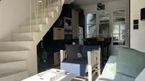 Das Erdgeschoss mit seinem durchgehenden Raum besteht aus dem Wohnzimmer und der Küchen-/Essecke mit Blick auf den privaten Innenhof.
