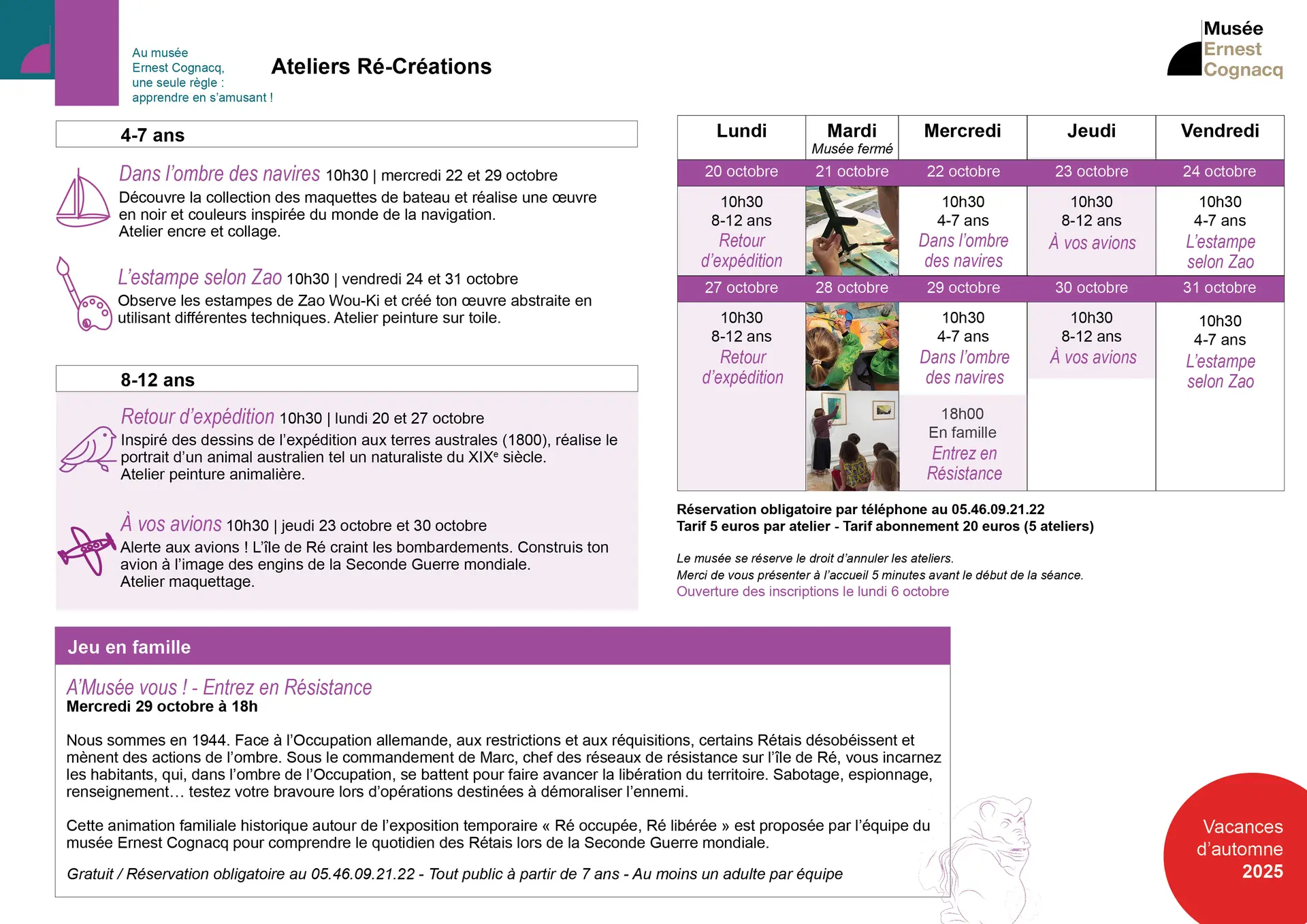 Reservierung erforderlich unter der Telefonnummer 05 46 09 21 22.